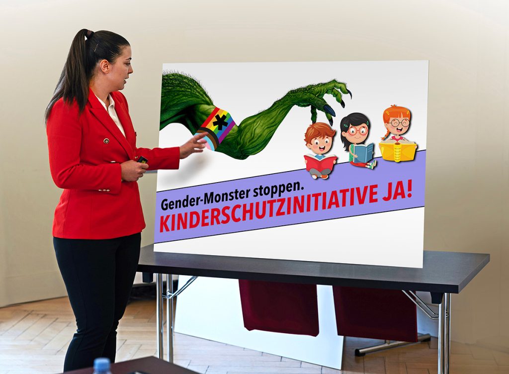 Sarah Regez: Das Gendern inkludiert überhaupt niemanden, denn es ist nicht klar, wer oder was zum Beispiel mit dem Genderstern gemeint ist. Es ist unerhört, dass man Kindern damit Angst macht, dass sie irgendjemanden diskriminieren würden, wenn sie sich nicht der Gendersprache bedienen. Deswegen haben wir als Initiativsujet auch das «Gender-Monster» gewählt. Die Ideologie prägt die Kinder und verbietet ihnen ein freies Denken, aus Angst zu diskriminieren.